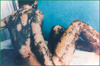 化學(xué)燒傷對皮膚的進(jìn)行性損傷使創(chuàng)面加深,同時(shí)因毒素吸收而造成全身臟器功能受損,病情危重。燒傷濕潤暴露療法配合全身支持療法,適用于各類化學(xué)燒傷的治療并取得了顯著療效。