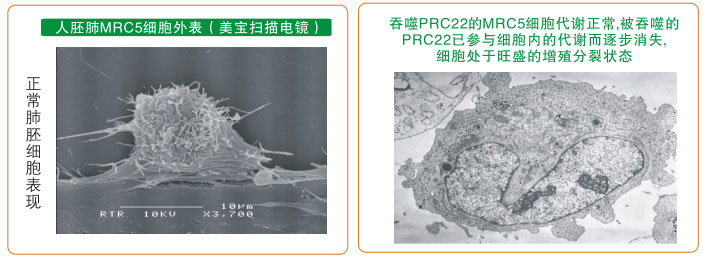 根據(jù)食品安全的基本原則,這個(gè)再生物質(zhì)被選出來(lái)后,要先確定這個(gè)物質(zhì)有沒(méi)有毒性。當(dāng)初美寶胃腸膠囊申請(qǐng)的時(shí)候,全部送到醫(yī)科大做的實(shí)驗(yàn),證明沒(méi)有任何毒性反應(yīng)。很多參加試驗(yàn)的小白鼠吃了不但不死還變胖了。這個(gè)毒性實(shí)驗(yàn)結(jié)果引起了我的思考,我就想它能不能預(yù)防癌癥?我就將世界上典型的用正常的細(xì)胞變成癌細(xì)胞的實(shí)驗(yàn)拷貝出來(lái)做做試試。若放上再生物質(zhì),正常細(xì)胞變?yōu)榘┘?xì)胞就證明它沒(méi)有預(yù)防癌作用。最后的結(jié)果竟然是只要放上再生物質(zhì)就沒(méi)有一個(gè)正常細(xì)胞變癌細(xì)胞的。通過(guò)這個(gè)實(shí)驗(yàn)結(jié)果我們可以看出了預(yù)防癌癥的結(jié)果,有了再生物質(zhì)后,用誘導(dǎo)的方法不能把細(xì)胞變?yōu)榘?。這個(gè)實(shí)驗(yàn)結(jié)束后,我又研究看這個(gè)物質(zhì)和癌是什么關(guān)系,是讓癌細(xì)胞不長(zhǎng)還是讓癌細(xì)胞壞死?歷時(shí)5年的癌癥研究后,終于有了結(jié)果。這個(gè)研究今天給大家看看。我們首先在動(dòng)物上做的實(shí)驗(yàn),而后又用人體做的原位實(shí)驗(yàn)。要知道肺癌是現(xiàn)在發(fā)病率最高的一個(gè)癌癥,放療化療治療效果幾乎都是零,即使把腫瘤切除了也只能活幾年,甚至人們還在統(tǒng)計(jì)學(xué)上找不出到底手術(shù)治療和采用非手術(shù)治療哪個(gè)死得快的明顯差異。現(xiàn)在還沒(méi)找到對(duì)肺癌的治療的更好辦法。我們利用潛能再生細(xì)胞,用11號(hào)、12號(hào)、21號(hào)、22號(hào)、31號(hào)再生物質(zhì)等,每一個(gè)細(xì)胞相對(duì)一種型號(hào)的物質(zhì),我們現(xiàn)在吃的膳素是共210號(hào)。其中6個(gè)型號(hào)都是針對(duì)肺細(xì)胞的,讓肺細(xì)胞再生,在篩選中并不是所有讓細(xì)胞再生的物質(zhì)都能產(chǎn)生這個(gè)抗癌作用。我們做的實(shí)驗(yàn),首先看物質(zhì)對(duì)人的癌細(xì)胞及正常肺細(xì)胞對(duì)照比較有什么作用,首先11號(hào)、12號(hào)、22號(hào)使正常細(xì)胞都正常生長(zhǎng),同時(shí)癌細(xì)胞放這個(gè)型號(hào)物質(zhì)也發(fā)生了變化。其中比較好的是22號(hào)物質(zhì)。人們現(xiàn)在抗癌方法基本上是既能殺癌細(xì)胞又能殺好細(xì)胞。而我們通過(guò)實(shí)驗(yàn)說(shuō)明加入的這個(gè)22號(hào)物質(zhì)讓好的細(xì)胞生長(zhǎng),又能殺癌細(xì)胞。所以我們將這三個(gè)號(hào)的物質(zhì)作為人的再生物質(zhì)的實(shí)驗(yàn),也用在人吃的營(yíng)養(yǎng)物質(zhì)上面。好多食物里面的東西都是讓癌細(xì)胞死,好細(xì)胞也死,還沒(méi)發(fā)現(xiàn)一種物質(zhì)能夠讓癌細(xì)胞死,好細(xì)胞活。但是我們找到的再生營(yíng)養(yǎng)物質(zhì)既能讓好細(xì)胞活又能讓癌細(xì)胞死。這里面的機(jī)密是什么?大家來(lái)看看,這是人的正常肺細(xì)胞,我們用電子顯微鏡看它的形態(tài)。它吞噬了這個(gè)22號(hào)物質(zhì)后,這個(gè)細(xì)胞活著,并且開(kāi)始分裂,再生物質(zhì)逐漸被細(xì)胞利用,再生物質(zhì)參與到細(xì)胞的建設(shè)中,而且這個(gè)細(xì)胞吞了再生物質(zhì)后就開(kāi)始再生,分裂旺盛,但沒(méi)有變成其他異常細(xì)胞。這個(gè)是沒(méi)有吃再生物質(zhì)的好細(xì)胞,所以它的細(xì)胞核在同一時(shí)間沒(méi)有分裂。同樣的物質(zhì)給癌細(xì)胞吃進(jìn)去后,癌細(xì)胞的吸附能力開(kāi)始降低,細(xì)胞里面的臟器變形了,然后就死亡了。細(xì)胞死亡有兩種,一種是細(xì)胞自殺,另一種是細(xì)胞破了。而這個(gè)癌細(xì)胞沒(méi)有破,屬于癌細(xì)胞自殺。