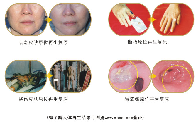 我們在燒傷后皮膚器官再生的研究中,實現(xiàn)了在失去皮膚器官的創(chuàng)面上重新再生出新的皮膚全部器官,破解了皮膚器官原位再生的秘密,繼而實現(xiàn)了人體各器官的原位再生,并確立了人體器官中具有第二次生命再生的細胞——潛能再生細胞的科學(xué)體系,最終使全身全厚皮燒傷的皮膚原位再生、斷指再生、胃腸再生等多器官的原位再生不再僅僅是科學(xué)夢想,而已成為事實。這一系列發(fā)明創(chuàng)舉,均獲得了國際著作權(quán)和美國、中國等多項專利權(quán),名副其實地成為實現(xiàn)體細胞克隆器官、原位器官再生、人體再生的世界唯一。我們用皮膚潛能再生細胞再生為原位干細胞,用原位再生更新和再生復(fù)原皮膚全部器官的技術(shù),實現(xiàn)了正常皮膚的再生更新維持、衰老皮膚的再生復(fù)原年輕、使皮膚器官的抗衰老和留住青春變?yōu)槭聦?;美寶皮膚原位再生復(fù)原技術(shù)就是由器官原位再生技術(shù)演化而來的。