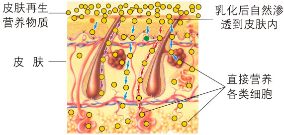 再生營養(yǎng)物質(zhì)乳化滲透皮膚內(nèi)示意圖