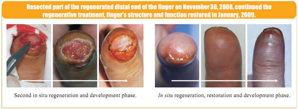 Our regenerative and restorative technique has achieved clinically the in situ regenerative restoration of the severed last segment of the finger.