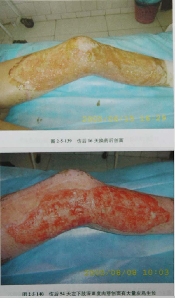 2)此類創(chuàng)面多發(fā)生在頭頂、手、足及小腿部位,創(chuàng)面很深達(dá)骨膜。