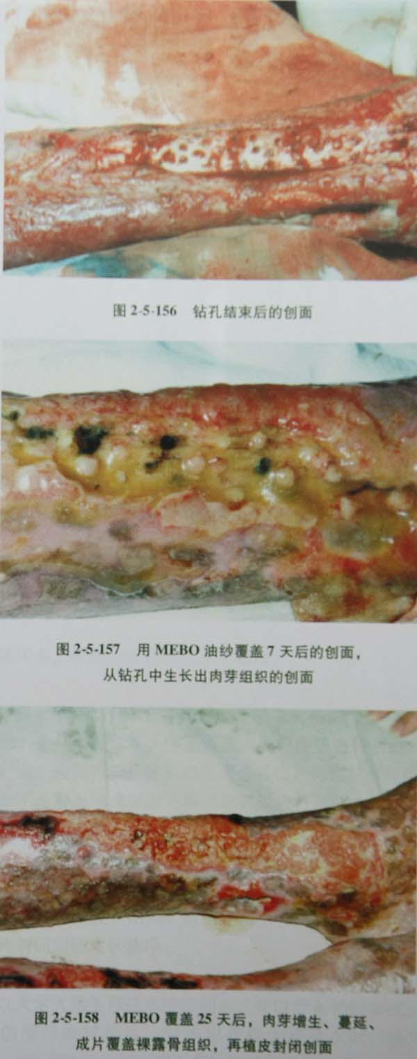 2已出現(xiàn)骨組織暴露,則采用暴露骨骼的清創(chuàng)鉆孔,然后以MEBO營養(yǎng)保護(hù)創(chuàng)面,一般在715天即可見暴露骨骼的鉆孔部位長出肉芽組織,此種肉芽組織在MEBO的作用下逐漸擴(kuò)展以至覆蓋暴露的骨骼,繼續(xù)以MEBO換藥促進(jìn)創(chuàng)面產(chǎn)生K1919型角蛋白),培養(yǎng)皮膚組織愈合創(chuàng)面。