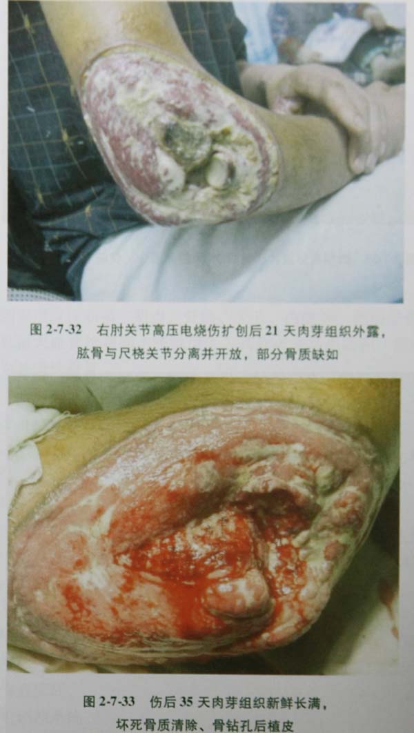 1四肢關(guān)節(jié)部位的嚴(yán)重?zé)齻粌H造成皮膚全層壞死,繼發(fā)局部壞死、加深,擴(kuò)大創(chuàng)面,常使骨、肌腱外露,給治療上增加一定難度,導(dǎo)致功能障礙。