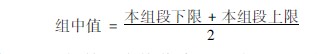 Md為中位數(shù),L為中位數(shù)所在組的下限,i為中位數(shù)所在組的組距,fmd為中位數(shù)所在組的頻數(shù),n為總額數(shù),c為中位數(shù)所在組以前的累計頻數(shù),累計頻數(shù)為每組例數(shù)與其之前各組例數(shù)之和。
