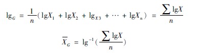 G為幾何均數(shù),X1,X2…為各變量值,n為總頻數(shù)。上式可以寫成對數(shù)形公式(365)和加權公式(366):