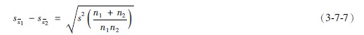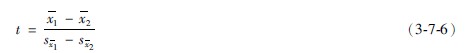 式中x1與x2為兩個樣本的平均數(shù),sx1-sx2為兩均數(shù)標(biāo)準(zhǔn)差的標(biāo)準(zhǔn)誤。計算公式為: