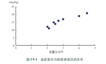 1根據(jù)表391中的數(shù)字,以橫坐標(biāo)表示血漿白蛋白(x),縱坐標(biāo)表示滲透壓(y),繪成散點(diǎn)圖(示圖391)。從所繪制的圖中可以看出,這些點(diǎn)子基本呈直線趨勢。