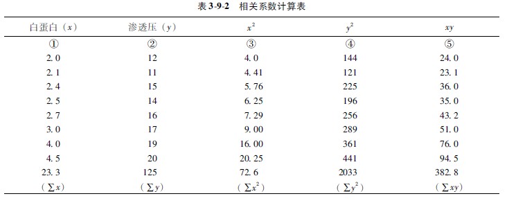 2列相關(guān)系數(shù)計(jì)算表(表392)