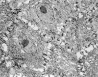 經(jīng)MEBT/MEBO治療10天,創(chuàng)面組織切片可見表皮棘層棘細胞出現(xiàn)并有橋粒連接(圖5-3-14~5-3-15)。顆粒層顆粒細胞出現(xiàn)。在基底細胞層可見黑色素小體(圖5-3-6~5-3-17)。并可見小血管周圍的吞噬細胞有吞噬現(xiàn)象(圖5-3-18),說明其功能也已經(jīng)在恢復。