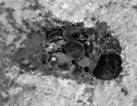 5-3-12 燒傷當日,單核細胞核偏移,固縮,并有吞噬現(xiàn)象  TE×8000