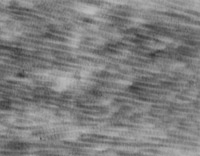 經(jīng)MEBT/MEBO治療20天,電鏡觀察到基底細胞層與纖維母細胞之間的半橋粒連接,同時可見纖維母細胞內(nèi)粗面內(nèi)質(zhì)網(wǎng)結(jié)構(gòu)和線粒體增生活躍(圖5-3-19~5-3-21)。 MEBT/MEBO治療30天后,上皮組織再生修復,已基本完成,創(chuàng)面組織切片顯示膠原纖維成熟,排列整齊(圖5-3-22),直徑為0.1~0.5祄,并可見明暗相間周期性橫紋(64nm),未見到膠原纖維扭曲和呈旋渦、菜花等病理形態(tài)。