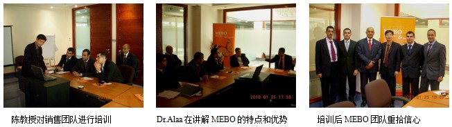 2、2010年1月25日中午,陳教授來(lái)到Julphar 的Jaddah辦公室,對(duì)MEBO團(tuán)隊(duì)進(jìn)行了再生醫(yī)學(xué)與產(chǎn)品知識(shí)的培訓(xùn),分析、討論并講解了MEBO燒傷膏的產(chǎn)品特點(diǎn)、技術(shù)含量,比較了MEBO其它同類競(jìng)爭(zhēng)產(chǎn)品和仿冒產(chǎn)品的不同及MEBO的優(yōu)勢(shì),大家聽(tīng)后立即茅塞頓開(kāi)。