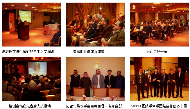 3、2010年1月23日晚上9時(shí),“燒傷再生醫(yī)學(xué)與療法在燒傷、創(chuàng)瘍的臨床研究與應(yīng)用”專題演講培訓(xùn)會(huì)在科威特市的Holiday Inn 酒店的大會(huì)議室隆重舉行。來(lái)自全國(guó)3個(gè)主要城市的20多家主要醫(yī)院的外科主任、燒傷中心主任、整形美容科主任和各相關(guān)專業(yè)的臨床醫(yī)師35人參加了這次再生醫(yī)學(xué)理論、研究和臨床應(yīng)用的專題培訓(xùn)演講,專家們聽(tīng)完演講后的感受是“耳目一新、受益菲淺”。