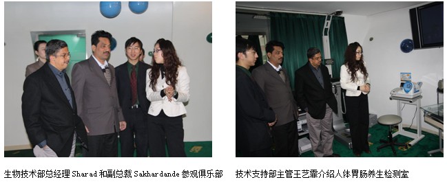最后,Mr.Sharad和Mr.Sakhardande在技術(shù)支持部主任王藝霏的帶領(lǐng)下,參觀了美寶人體再生復(fù)原俱樂部和人體細胞培養(yǎng)實驗室,實際觀摩了人體再生復(fù)原科學(xué)技術(shù)的應(yīng)用。Mr.Sharad和Mr.Sakhardande對美寶的先進的科學(xué)技術(shù)和人文環(huán)境給予了高度的評價,并希望人體再生復(fù)原科學(xué)技術(shù)能夠早日引進印度,造福印度百姓。
