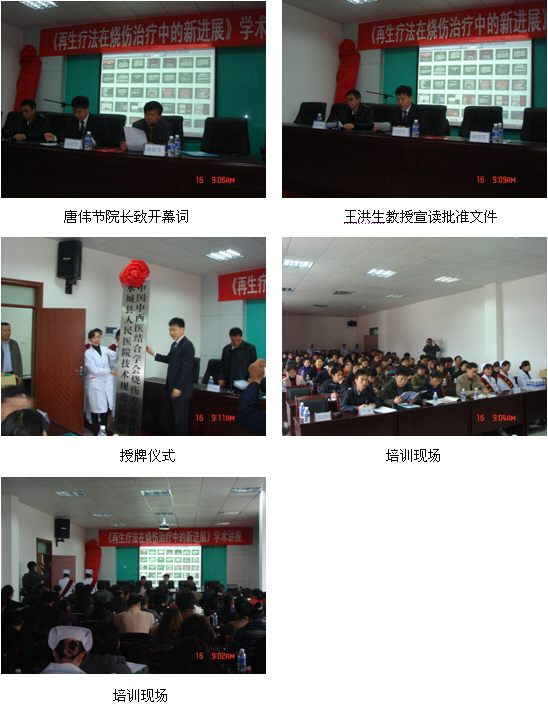 2010年4月16日,經(jīng)中國(guó)中西醫(yī)結(jié)合學(xué)會(huì)燒傷專業(yè)委員會(huì)審核批準(zhǔn)的“中國(guó)中西醫(yī)結(jié)合學(xué)會(huì)燒傷專業(yè)委員會(huì)水城縣人民醫(yī)院技術(shù)規(guī)范培訓(xùn)基地”在貴州省水城縣人民醫(yī)院成立,縣政府縣衛(wèi)生局下文要求全縣醫(yī)療單位參加成立大會(huì)和“再生療法在燒傷治療中的新進(jìn)展”培訓(xùn)講座。此次成立大會(huì)邀請(qǐng)了中國(guó)中西醫(yī)結(jié)合學(xué)會(huì)燒傷專業(yè)委員會(huì)常委王洪生教授和貴州省學(xué)術(shù)辦公室主任張志明。大會(huì)由該院燒傷科主任郭大勇主持,唐偉節(jié)院長(zhǎng)致開(kāi)幕詞,王洪生教授宣讀了“中國(guó)中西醫(yī)結(jié)合學(xué)會(huì)燒傷專業(yè)委員會(huì)批準(zhǔn)成立水城縣人民醫(yī)院技術(shù)規(guī)范培訓(xùn)基地的批準(zhǔn)文件”,并舉行了簡(jiǎn)短的揭牌儀式。最后,王洪生教授向水城縣30多家醫(yī)療單位,鄉(xiāng)鎮(zhèn)衛(wèi)生院的醫(yī)護(hù)人員進(jìn)行了“再生療法在燒傷治療中的新進(jìn)展”的培訓(xùn)。大家的學(xué)習(xí)態(tài)度積極,學(xué)習(xí)熱情非常高漲,起到了很好的臨床應(yīng)用的培訓(xùn)效果。