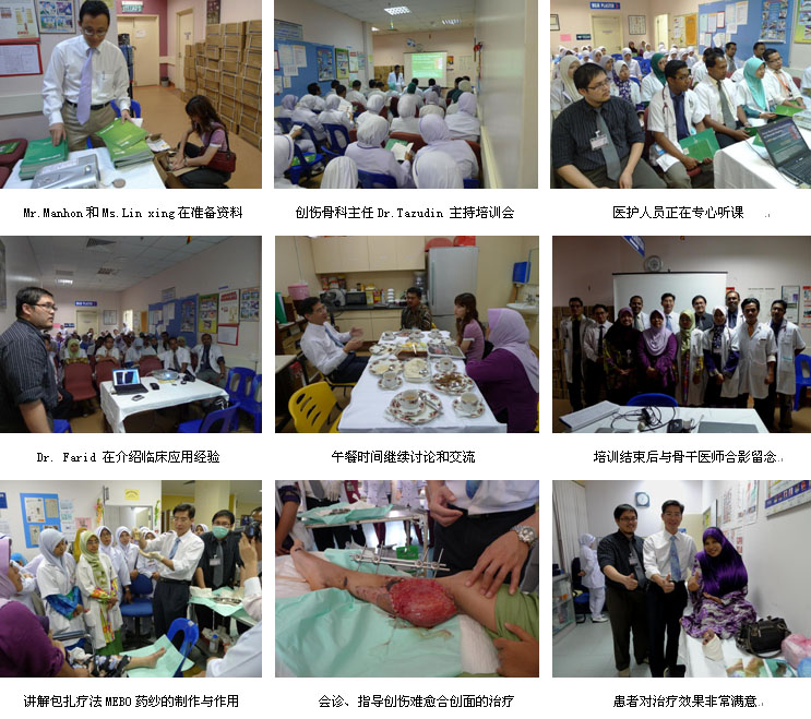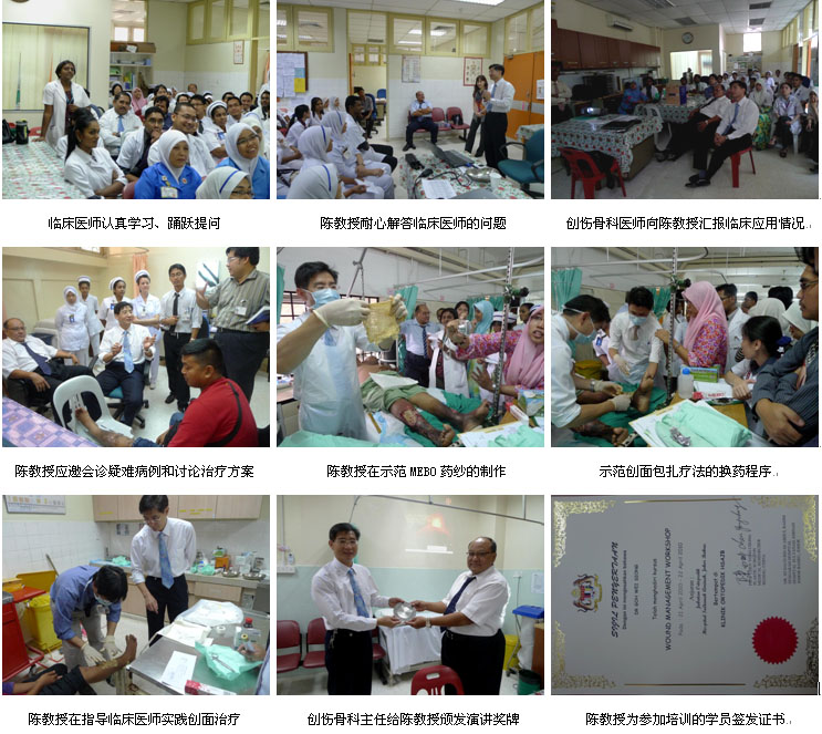 2010年4月1日至25日,馬來西亞新一年的第一輪醫(yī)療開發(fā)工作先后在首都吉隆坡市、蘇邦市、八達(dá)靈.再野市等6個省、市展開,集團(tuán)財務(wù)總監(jiān)李翠和國際部徐沖經(jīng)理也到現(xiàn)場督戰(zhàn),中國燒傷創(chuàng)瘍科技中心臨床部主任、北京榮祥再生醫(yī)學(xué)研究所副所長、北京中西醫(yī)結(jié)合學(xué)會燒傷專業(yè)委員會副主任委員、中國燒傷創(chuàng)瘍雜志社副社長陳永翀教授先后應(yīng)邀到多家政府醫(yī)院和私營醫(yī)院,進(jìn)行燒傷再生醫(yī)學(xué)技術(shù)培訓(xùn)、學(xué)術(shù)交流、到燒傷中心和創(chuàng)傷骨科會診指導(dǎo)燒傷創(chuàng)瘍病例的治療,以及和各醫(yī)院的主任、院長研究討論臨床科研工作的開展和燒傷創(chuàng)瘍再生愈合中心的建設(shè)等,很受醫(yī)院、醫(yī)師、護(hù)士和患者的歡迎。在25天的時間里,先后舉辦了院級培訓(xùn)班8期,重點專家學(xué)術(shù)交流7次,培訓(xùn)了燒傷、整形、普通外科、骨科的醫(yī)師和護(hù)士300余名,對 3家老醫(yī)院進(jìn)行了有效的維護(hù)和促進(jìn),成功新開發(fā)了3家大型政府教學(xué)醫(yī)院和2家私營醫(yī)院,幫助建立了一家燒傷中心(國家級技術(shù)規(guī)范基地),會診、指導(dǎo)危重疑難病例:燒傷10例(特重度燒傷4例),創(chuàng)傷11例,慢性潰瘍15例,疤痕3例,皮膚病2例,實現(xiàn)了較好的醫(yī)療開發(fā)、維護(hù)和進(jìn)一步規(guī)范臨床技術(shù)的效果。