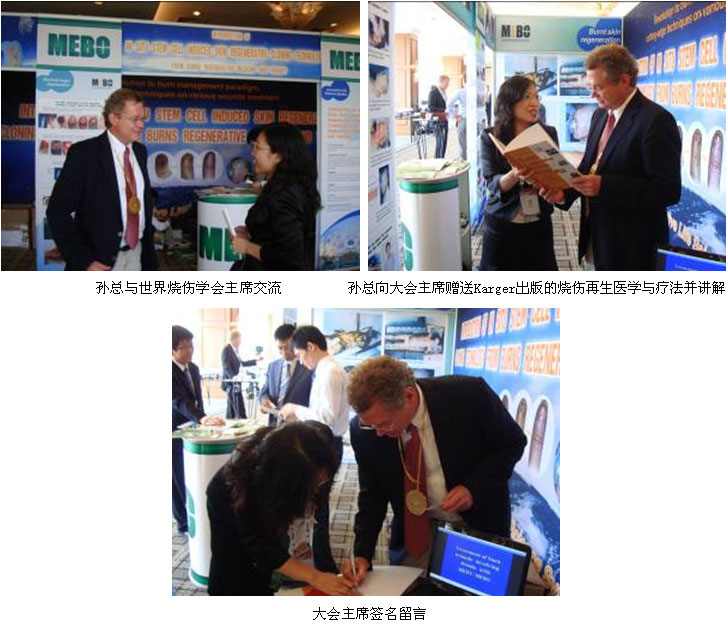 特別值得一提的是國際燒傷學(xué)會(huì)主席,美國的羅納德 霍普金斯主席也應(yīng)邀興致勃勃的趕到美寶的展位,與集團(tuán)國際市場總部總裁孫霞探討再生科學(xué)在燒傷領(lǐng)域的指導(dǎo)性作用。集團(tuán)總裁孫霞熱情洋溢的介紹了燒傷再生醫(yī)學(xué)在燒傷、體表潰瘍、不愈合慢性創(chuàng)面的臨床應(yīng)用,以及所取得的臨床治療效果,以及今后的多方面合作等,并代表再生科學(xué)的創(chuàng)始人徐榮祥教授正式邀請(qǐng)羅納德 霍普金斯主席訪問美寶。羅納德霍普金斯主席在交流后,興奮地說:“燒傷治療及再生的發(fā)展速度真讓人難以自信,美寶技術(shù)及濕潤燒傷膏很好的臨床治療效果。希望以后能夠有機(jī)會(huì)親自考察燒傷再生療法與美寶濕潤燒傷膏治療燒傷病人的情況。