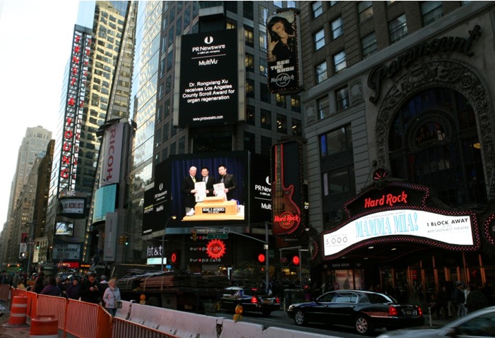 近日路透社刊發(fā)了徐榮祥父子獲得洛杉磯SCROLL AWARD最高榮譽獎的新聞,同時在紐約時代廣場的大屏幕上刊出洛杉磯政府頒給徐榮祥父子獎的照片。