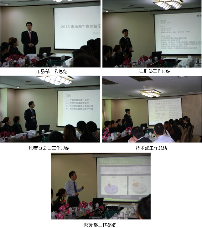 上午的會議主題為2013年總結(jié),國際市場集團各部門負責(zé)人由吳云、張印、陳剛、舒葉、肖舸、樂盛華、劉林、張京艷分別就各自所轄部門2013年的工作總結(jié)進行了詳細地匯報,總結(jié)了2013年取得剖析工作中存在的不足,提出了基本的工作改進思路。隨后,孫總就各部門的工作總結(jié)分別針對性地進行了精準(zhǔn)地點評,一方面肯定了國際市場集團在面臨2013國際市場遇到的多項客觀阻力的前提下所取得的成績,特別是在整體銷售回款目標(biāo)任務(wù)完成;另一方面針對各部門工作存在的不足,包括各市場終端活動掌握的匱乏,分公司工作進度緩慢及經(jīng)營模式無突破等方面,一陣見血地提出了批評并分別做出了明確的改進要求。