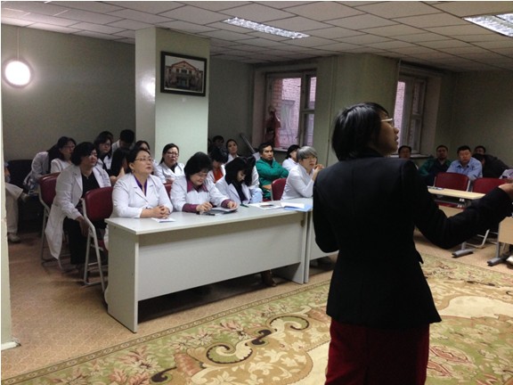 2月20日中午12點(diǎn),美寶團(tuán)隊(duì)來到烏蘭巴托的青格爾泰區(qū)中心醫(yī)院,培訓(xùn)內(nèi)容涵蓋了出席的20位醫(yī)生專業(yè)領(lǐng)域,包括再生療法在糖尿病潰瘍,褥瘡,靜脈潰瘍,創(chuàng)傷,手術(shù)創(chuàng)面及婦科應(yīng)用。醫(yī)生們對(duì)展示的典型案例很感興趣,詢問了具體的治療過程,換藥操作,并且又一次表達(dá)了試用疤痕平的愿望。Myadagmaa 醫(yī)生是該院的婦產(chǎn)科醫(yī)生,看到展示的婦科手術(shù)創(chuàng)面的應(yīng)用后,急切的咨詢?cè)趮D科方面的其它應(yīng)用,張美艷介紹了再生療法在宮頸電環(huán)切除術(shù),剖腹產(chǎn)手術(shù),腹腔鏡手術(shù),會(huì)陰切開術(shù),會(huì)陰撕裂傷及宮頸糜爛等方面的應(yīng)用,與醫(yī)生互換了名片,贈(zèng)送了美寶的學(xué)習(xí)光盤及幾年品,答應(yīng)通過郵件等方式解答病例咨詢及臨床應(yīng)用問題。