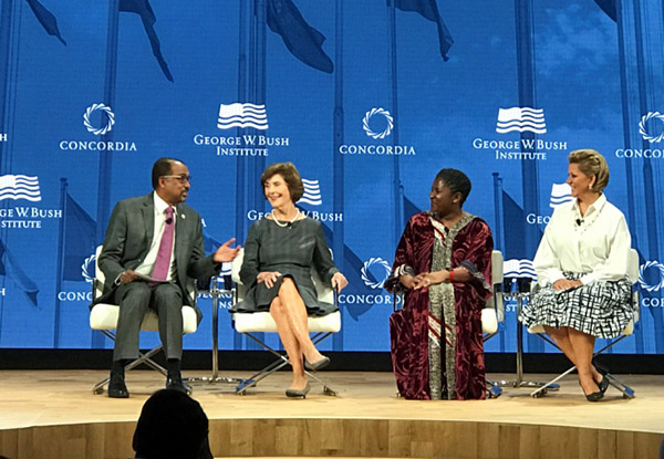 2017年9月18日,徐榮祥基金會總裁徐鵬應(yīng)邀出席在紐約舉行的CONCORDIA 2017峰會。與會嘉賓包括英國前首相布萊爾、美國前第一夫人勞拉•布什、現(xiàn)任美國交通部長趙小蘭和商務(wù)部長羅斯等國際政要以及聯(lián)合國多個(gè)部門領(lǐng)導(dǎo)。對話嘉賓們就動員私人領(lǐng)域資源支持難民和移民、信息平等、全球第一夫人們的影響力和領(lǐng)導(dǎo)力、黨派偏見的影響、西半球的經(jīng)濟(jì)發(fā)展與繁榮、信息泛濫時(shí)代的政治策略、技術(shù)與勞動力的未來、合作產(chǎn)生影響力、美國交通領(lǐng)域的合作機(jī)會、利用技術(shù)藝術(shù)和文化解決全球挑戰(zhàn)、通過實(shí)現(xiàn)可持續(xù)發(fā)展目標(biāo)構(gòu)筑安全與和平、人道主義、打破玻璃天花板、跨界合作、美國的環(huán)境政策、公司與政府應(yīng)對能源變遷的規(guī)劃、美國的公私合作等眾多議題展開高峰對話和探討。