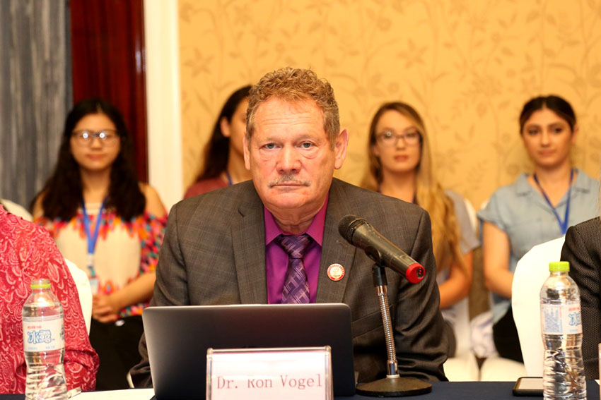 徐榮祥徐健康與公眾服務(wù)學(xué)院院長(zhǎng)Ronald Vogel在儀式上發(fā)表講話,他對(duì)徐榮祥基金會(huì)支持發(fā)起的此次難得的學(xué)習(xí)機(jī)會(huì)深表感謝。他相信這樣的機(jī)會(huì)對(duì)于來到中國(guó)的這批特別甄選的護(hù)理學(xué)院和社工學(xué)院的優(yōu)秀學(xué)生乃至整個(gè)院系都是很好的歷練機(jī)會(huì)。他說,我們現(xiàn)在在中國(guó)又有了一個(gè)大家庭,我們所有的人都因?yàn)樾鞓s祥教授的價(jià)值觀和信仰而更好的聯(lián)結(jié)在了一起。我們專注于治療,滿足人們的各種需求,并一起努力消除人類的痛苦。