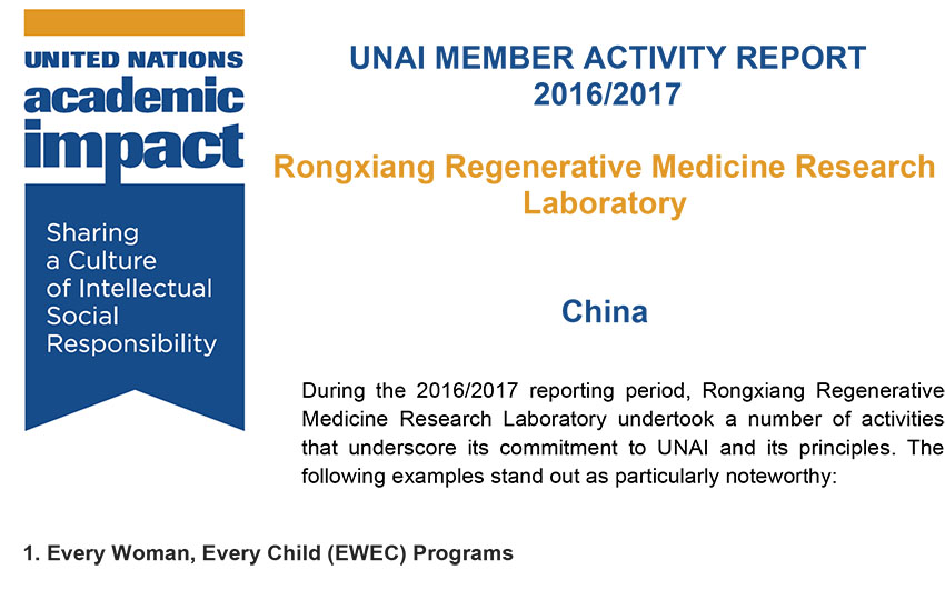 “ 聯(lián)合國學術影響”成員報告北京榮祥再生醫(yī)學研究所相關展示內(nèi)容如下: