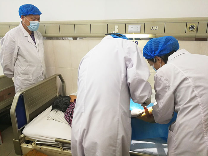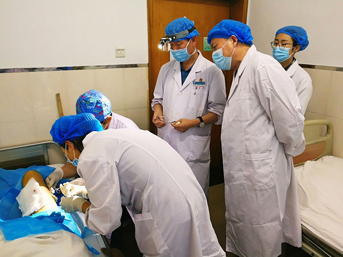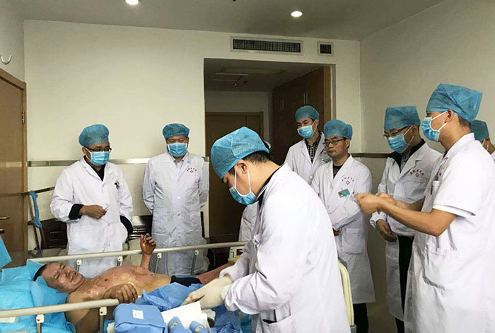 楊智斌總裁此行還會見了西安交通大學(xué)附屬西安第九醫(yī)院燒傷科肖厚安主任,該院作為陜西中西醫(yī)結(jié)合學(xué)會燒傷專業(yè)委員會主委單位,在再生醫(yī)療技術(shù)的臨床應(yīng)用中取得了一定成果,特別是在再生療法配合自體微粒皮種植技術(shù)治療面積較大的皮瓣、組織缺損創(chuàng)面的應(yīng)用方面,解決了傳統(tǒng)燒傷、創(chuàng)面治療缺少皮源這一難題。在肖厚安主任的陪同下,楊智斌總裁還現(xiàn)場觀摩了微粒皮種植術(shù)臨床應(yīng)用,認真聽取了該科室多年來應(yīng)用再生醫(yī)療技術(shù)治療的病例總結(jié)。