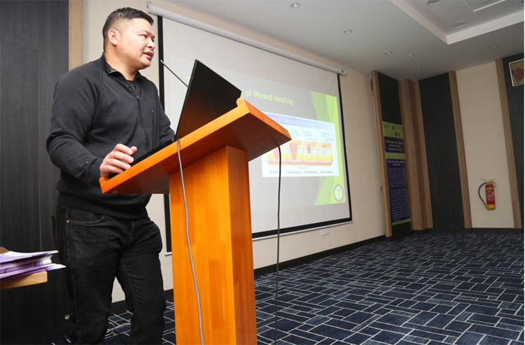 9月28日下午,蒙古國(guó)首都-烏蘭巴托市假日酒店會(huì)議廳,來(lái)自市中央醫(yī)院、瘡瘍研究中心、燒傷創(chuàng)瘍醫(yī)院、糖尿病中心醫(yī)院、政府公務(wù)員醫(yī)院、軍區(qū)醫(yī)院等86名當(dāng)?shù)貙<覅⒓恿舜舜位顒?dòng),詳細(xì)報(bào)道如下: