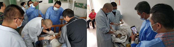 菲專家在科室專家指導(dǎo)下進(jìn)行實(shí)際換藥操作