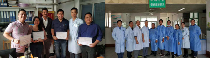 11月14日清晨,菲律賓專家一行便興致勃勃地前往燒傷與創(chuàng)面修復(fù)科病房觀摩再生醫(yī)療技術(shù)在燒傷、糖尿病足潰瘍、壓瘡等創(chuàng)面的規(guī)范化治療,并在科室醫(yī)生的指導(dǎo)下實(shí)際上手操作換藥流程。隨后,各醫(yī)療專家到會議室就再生醫(yī)療技術(shù)在慢性及難愈性創(chuàng)面的規(guī)范化應(yīng)用再次進(jìn)行了具體的學(xué)術(shù)交流及探討。就再生醫(yī)療技術(shù)在糖尿病足潰瘍、壓瘡創(chuàng)面、糖尿病足潰瘍及皮膚病的良好應(yīng)用效果進(jìn)行了交流,加深了對再生醫(yī)學(xué)的理解。還特別分享了再生醫(yī)療技術(shù)與微粒皮種植結(jié)合使用的病例等。菲律賓專家高興的表示,盡管他們已有多年的再生醫(yī)療技術(shù)使用經(jīng)驗(yàn),但仍然驚訝于再生醫(yī)療技術(shù)在多學(xué)科應(yīng)用所取得的成就,并表示回國后將致力于再生醫(yī)學(xué)在菲律賓更廣泛的發(fā)展。最后,由陳錚教授向來訪的專家團(tuán)隊頒發(fā)了培訓(xùn)證書,本次來華交流活動圓滿結(jié)束。