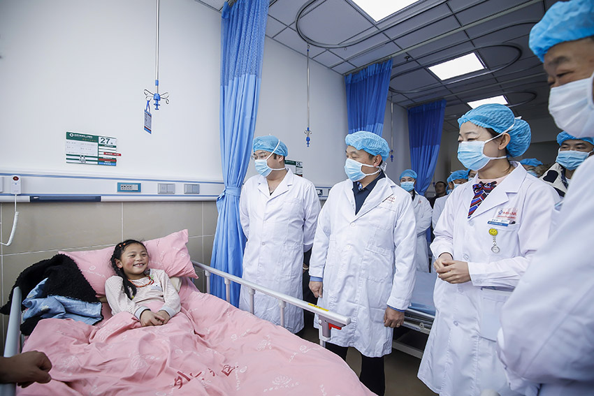 徐鵬一行還參觀了燒傷創(chuàng)瘍科、兒科等科室。一個(gè)因翻車壓傷造成跟骨外露并拒絕做手術(shù)的西藏小女孩,在燒傷創(chuàng)瘍?cè)偕t(yī)療技術(shù)的治療下,正在很好的復(fù)原中,不會(huì)講漢語的父親一直豎著大拇指,表達(dá)著對(duì)醫(yī)生的謝意,對(duì)技術(shù)的贊美。這一幕深深觸動(dòng)了現(xiàn)場的每一位來訪者,中國人民對(duì)外友好協(xié)會(huì)美大部副主任吉擁軍表達(dá)了自己特別的感動(dòng)之情,并表示再一次在現(xiàn)場切實(shí)感受到了“生命再生”項(xiàng)目的意義,感受到了源自中國的燒傷創(chuàng)瘍?cè)偕t(yī)療技術(shù)通過“生命再生”行動(dòng)走向世界的價(jià)值。
