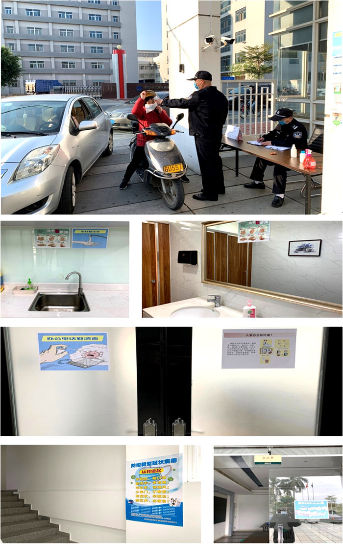 復(fù)工時,及時收集員工的健康情況及活動流向,重點排查外地員工居住信息和返崗動態(tài),嚴格管理返汕員工,要求外地返崗人員自抵達汕頭后當(dāng)日起向單位報備并居家隔離觀察14天;配合國家及本地區(qū)關(guān)于防控疫情相關(guān)政策,及時通知員工關(guān)于防控、應(yīng)急信息,加強復(fù)工復(fù)產(chǎn)后新冠肺炎防治知識科學(xué)宣傳普及,引導(dǎo)企業(yè)員工充分了解新冠肺炎防治知識,科學(xué)理性認識疫情,掌握防護要點,增強防護意識,理解、支持并配合防控工作;加強員工健康監(jiān)測,要求全體返崗人員按要求進行每日登記、記錄體溫、外出動向和佩戴口罩等健康管理措施;嚴格控制上班期間人員進出,設(shè)置門口體溫測量及雙手消毒區(qū)域,并要求佩戴口罩;加強樓內(nèi)各區(qū)域圖片警示告知,提高員工自我防護意識和能力;疫情期間,公司食堂采用分餐及分散輪流單獨就餐的形式,避免扎堆聚餐,就餐期間避免面對面就餐交流,盡量減少人員集中場所的駐留時間;做好工作場所物體表面的清潔消毒,保持環(huán)境整潔衛(wèi)生,定期消毒并做好清潔消毒記錄,辦公室勤開窗,加強工作場所通風(fēng)換氣,保持室內(nèi)空氣流通,多人辦公時需佩戴口罩。