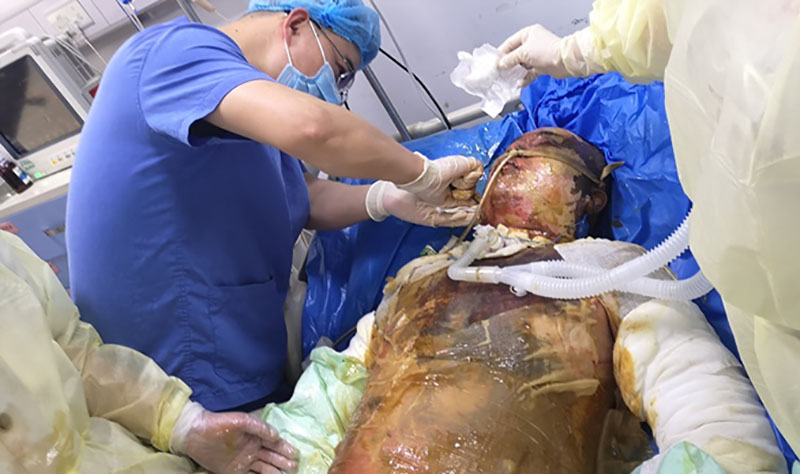 成都大學(xué)附屬醫(yī)院急診科和燒傷二病區(qū)主任梁隆斌表示:“這么快的出院時(shí)間,與治療方法分不開(kāi),醫(yī)院針對(duì)大面積燒傷,采用了我國(guó)特有的再生醫(yī)療濕潤(rùn)療法,這種方法恢復(fù)較快,留得瘢痕少,后期需要做的矯形手術(shù)少。剛?cè)朐簳r(shí),我們看到男患者的雙手被燒傷像焦炭,都以為可能手保不住了,最后還是保住了,功能也沒(méi)有受到太大影響。”。