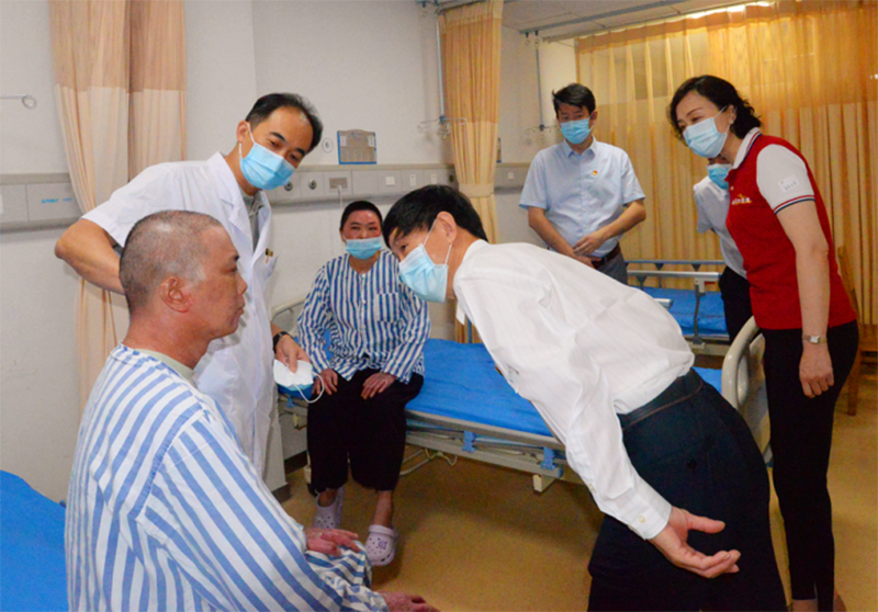 2020年8月7日,美寶集團(tuán)總裁楊智斌,美寶集團(tuán)副總裁、中國(guó)紅基會(huì)徐榮祥再生生命公益基金管委會(huì)主任陳寶琪,基金辦公室主任張坤,在成都大學(xué)附屬醫(yī)院為四川最感人夫妻盧永杰及馮兆琴送上了徐榮祥再生生命公益基金捐贈(zèng)的6萬(wàn)元醫(yī)療救助費(fèi)?;饡?huì)不僅捐資更是捐贈(zèng)了價(jià)值8.64萬(wàn)元的美寶濕潤(rùn)燒傷膏,并邀請(qǐng)燒傷創(chuàng)瘍?cè)偕t(yī)療專(zhuān)家為他們進(jìn)行會(huì)診,從藥品、資金和技術(shù)3方面給予這個(gè)家庭全力支持,幫助他們渡過(guò)人生難關(guān)。