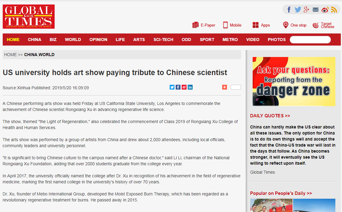 環(huán)球時報:US university holds art show paying tribute to Chinese scientist