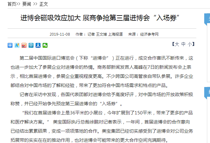 經(jīng)濟參考:進博會磁吸效應加大 展商爭搶第三屆進博會“入場券”