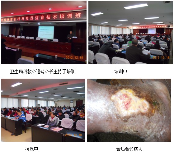 2012年12月18日應(yīng)湖南省株洲市衛(wèi)生局的邀請(qǐng),北京燒傷創(chuàng)瘍研究所金黨軍教授前往株洲市參加了由株洲市衛(wèi)生局主辦的株洲市基層醫(yī)療適宜技術(shù)培訓(xùn)。金黨軍教授主要講解了再生復(fù)原技術(shù)。市衛(wèi)生局科教科領(lǐng)導(dǎo)以及來自株洲市區(qū)所屬轄區(qū)內(nèi)的基層醫(yī)務(wù)人員180人參加了培訓(xùn),衛(wèi)生局科教科謝瓊科長(zhǎng)主持了此次培訓(xùn)。