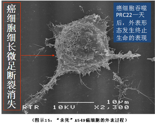 生命活動和正常細(xì)胞相反,再生物質(zhì)進(jìn)入癌細(xì)胞后,線粒體開始“小腫”(‘腫’是線粒體功能降低的主要表現(xiàn)),而后細(xì)胞外面的“腿”開始逐漸消失(詳見圖示15)