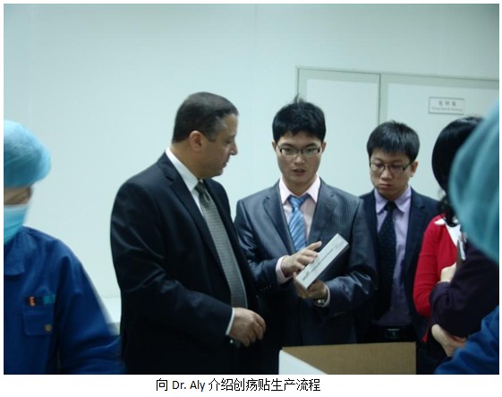 之后Dr.Ayman一行在商總和孫總的陪同下,一同參觀了新的廠房設(shè)備,并查看目前正在做最后包裝程序的發(fā)往沙特的創(chuàng)瘍貼產(chǎn)品。Dr.Ayman信心滿滿地說:“未來我們將勢必打造美寶品牌的多產(chǎn)品體系,將快速大力拓展醫(yī)療器械類產(chǎn)品在中東、非洲、南美洲的深入合作和市場營銷,努力將美寶創(chuàng)瘍貼、美寶疤痕軟膏打造成為第二、第三個濕潤燒傷膏!”