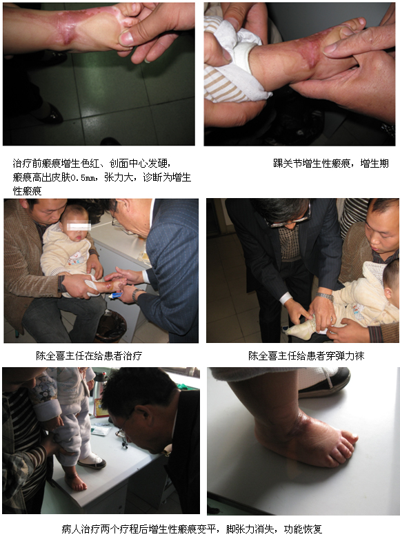 粘連、蹼狀瘢痕的治療是臨床上一個(gè)棘手問(wèn)題,其方法繁多,臨床都是采用手術(shù)療法治療,通過(guò)保守治療傷后粘連性瘢痕的報(bào)道少之又少。隨著再生醫(yī)療技術(shù)的發(fā)展及美寶疤痕軟膏的臨床應(yīng)用解決了深度燒傷愈后創(chuàng)面的疤痕預(yù)防、保健和治療的技術(shù)難題,以上醫(yī)院通過(guò)應(yīng)用原位再生醫(yī)療技術(shù)和美寶疤痕軟膏治療攣縮性瘢痕、粘連性瘢痕、增生性瘢痕,在陳全喜主任精心的指導(dǎo)下,均取得了顯著的療效,只要堅(jiān)持正確的療程和方法進(jìn)行應(yīng)用,一般都不需手術(shù)或大大縮小手術(shù)范圍,隨著病程轉(zhuǎn)歸大部分增生性疤痕都能自行消退,通過(guò)大量臨床實(shí)踐效果滿意,再次呼吁對(duì)深度燒傷愈后患者應(yīng)用美疤痕軟膏作為疤痕的預(yù)防與治療,應(yīng)列為常規(guī),以減少疤痕增生或致殘。