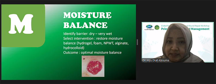 首位講者是來自印尼Pertamina中央醫(yī)院的整形重建外科醫(yī)生Dr. Ayu Diah Kesuma,她帶來了題為《創(chuàng)面評(píng)估》的演講。她在演講中討論了創(chuàng)面評(píng)估工具、疼痛評(píng)估、創(chuàng)面感染評(píng)估等,深入地講解了治療過程中動(dòng)態(tài)評(píng)估的相關(guān)內(nèi)容。