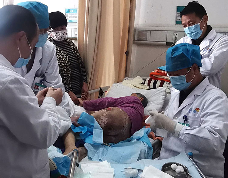 2月27日,應(yīng)邯鄲館陶縣中醫(yī)院之邀,《中國(guó)燒傷創(chuàng)瘍雜志》常務(wù)編委、燒傷創(chuàng)瘍?cè)偕t(yī)療技術(shù)臨床專家趙瑞慶,在該院會(huì)診了一例因燒傷后未愈,在原部位又合并壓力性四度潰瘍、粗隆間外露的80歲的老年患者,創(chuàng)面感染,病情危重。趙教授現(xiàn)場(chǎng)處置后立即組織當(dāng)?shù)蒯t(yī)務(wù)人員討論病情并制定了下一步的診療方案,受到當(dāng)?shù)蒯t(yī)護(hù)人員及家屬的稱贊。