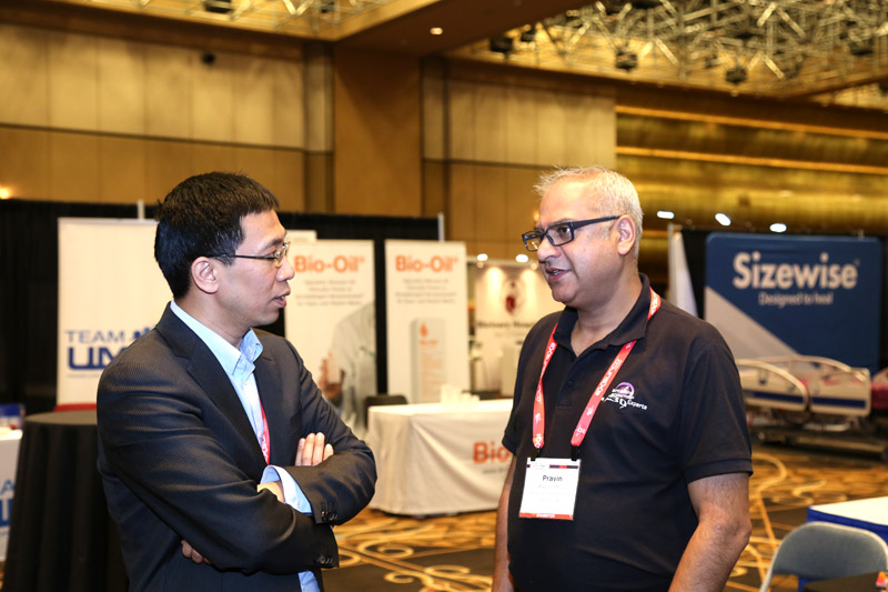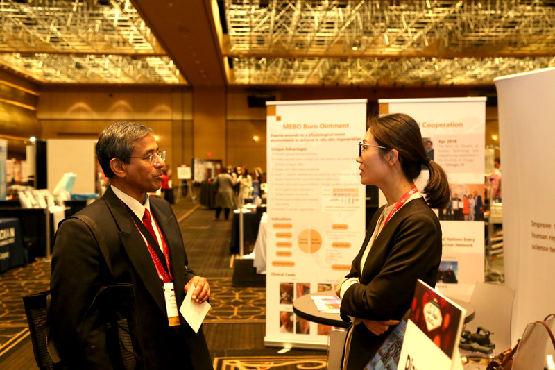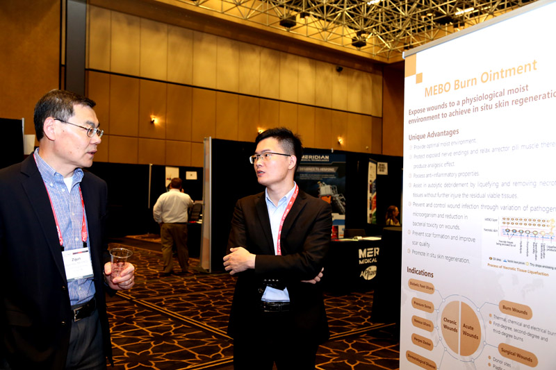 會議期間,許多美寶的老朋友們到訪展臺,詢問美寶近況,關(guān)心燒傷再生醫(yī)學世界范圍內(nèi)的發(fā)展。其中來自美國俄克拉何馬州(Oklahoma)的Dr. Paul Silverstein是美寶近30年來的老朋友(1972年間參與美國越戰(zhàn)士兵治療并獲得美國Meritorious Service Medal獎?wù)拢?,如?0多歲高齡的他依然記得徐榮祥大夫在美國的演講,記得2003年John A. Boswick論壇上與美寶的深切交流(注:John A. Boswick Symposium是美國燒傷界最知名的論壇之一,1977年開始每年2月份在美國夏威夷舉行),深切希望美寶技術(shù)和產(chǎn)品能夠在美國盡快得到應(yīng)用。同時,來自中國、印度、卡塔爾、土耳其、約旦、印尼及馬來西亞等國、應(yīng)用美寶濕潤燒傷膏多年的醫(yī)療專家也到訪了展臺,紛紛詢問美寶在美國的注冊進展。