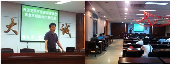 2012年5月8日因受福建泰寧縣中醫(yī)院的邀請(qǐng),中國中西醫(yī)結(jié)合學(xué)會(huì)燒傷專業(yè)委員會(huì)常委兼秘書、《中國燒傷創(chuàng)瘍雜志》副總編輯、北京美寶燒傷創(chuàng)瘍研究所副所長(zhǎng)、臨床部主任王洪生研究員趕往三明地區(qū)泰寧縣中醫(yī)院,晚上七點(diǎn)半在該院六樓會(huì)議室為該院的外科、糖尿病科、皮膚科等科室的醫(yī)生和部分護(hù)理部的人員共30余人進(jìn)行了“再生復(fù)原療法在燒傷及難愈性創(chuàng)瘍創(chuàng)面治療新進(jìn)展”的學(xué)術(shù)講座。