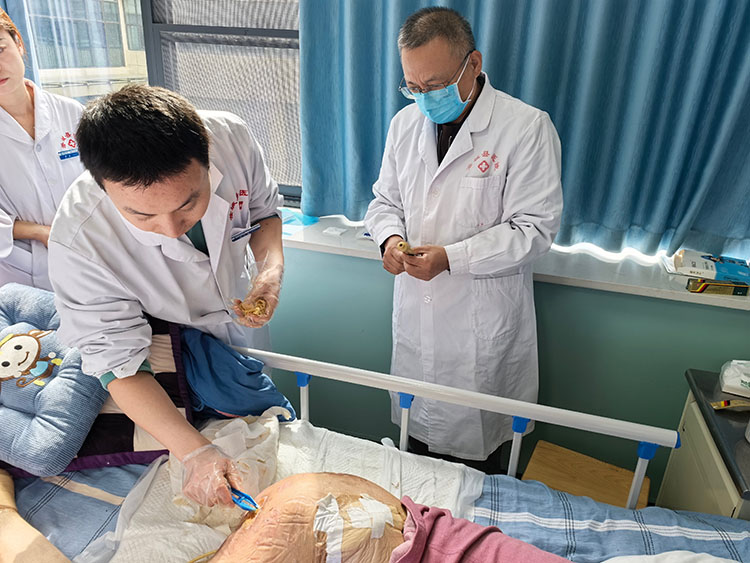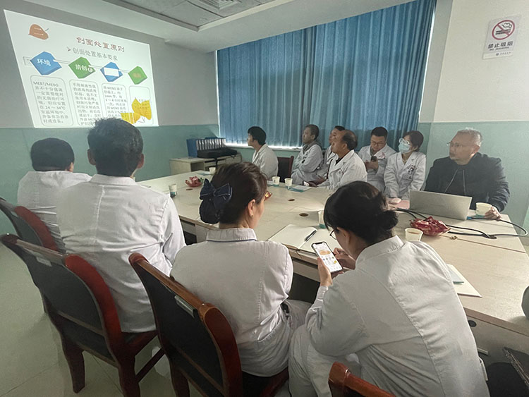 2025年10月15日,《中國燒傷創(chuàng)瘍雜志》總編、北京市中西醫(yī)結合學會燒傷專業(yè)委員會副主任委員方進勇,來到商洛市中醫(yī)醫(yī)院會診難愈創(chuàng)面病人,科室張文濤主任及科醫(yī)生、護士長參加。