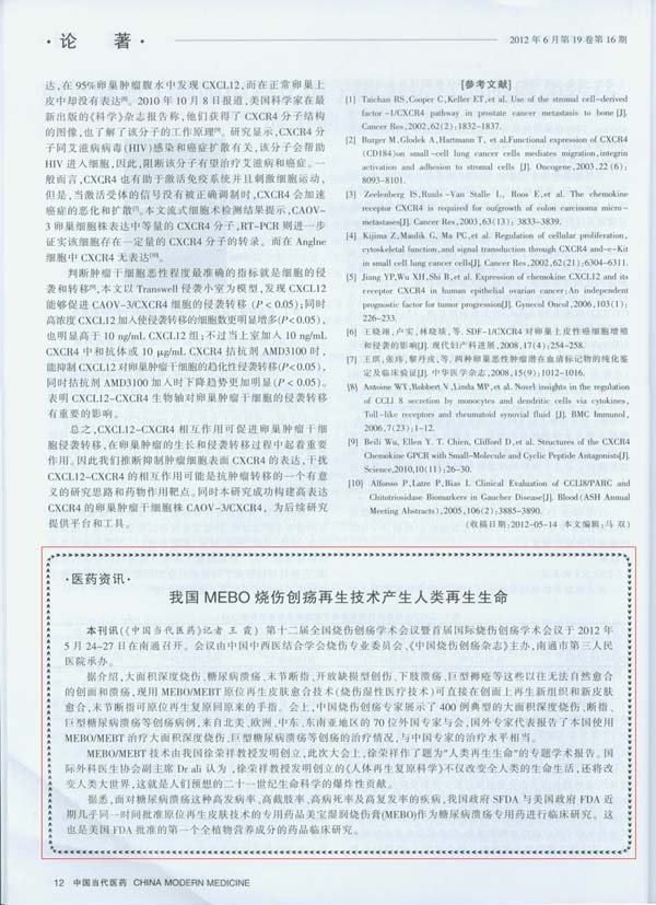 中國當代醫(yī)藥雜志:我國MEBO燒傷創(chuàng)瘍再生技術產(chǎn)生人類再生生命