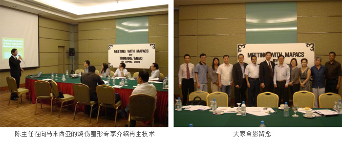 2009年4月18日,馬來西亞2009年燒傷整形外科常務(wù)委員會(huì)議在吉隆坡Boulevard Hotel召開,參加會(huì)議的有來自各州、省、市的重要的燒傷、整形專家約15人。陳永翀主任應(yīng)邀參加會(huì)議,并以“The chief introduction of burns regenerative medicine and therapy”為題進(jìn)行專題報(bào)告,在陳主任的30分鐘的演講中,向各位燒傷整形專家闡述了全厚皮燒傷通過激活潛能再生細(xì)胞轉(zhuǎn)化為干細(xì)胞,然后利用干細(xì)胞培養(yǎng)再生技術(shù)實(shí)現(xiàn)原位再生復(fù)原皮膚器官的過程,同時(shí)向大家展示了眾多的大面積特重度燒傷的臨床病例,大家聽后非常興奮和激動(dòng),各位專家爭先恐后地舉手提問,陳主任和助手們則逐一進(jìn)行解答,大家還紛紛詢問何時(shí)能夠買到MEBO和引進(jìn)該技術(shù),提問和討論階段占了1個(gè)半小時(shí)。最后,燒傷學(xué)會(huì)主席Dr. Peter Wong向陳永翀主任發(fā)出邀請,邀請陳主任出席2010由馬來西亞燒傷學(xué)會(huì)主辦的在馬來西亞Kuching市召開的亞洲燒傷整形大會(huì)并做專題演講。