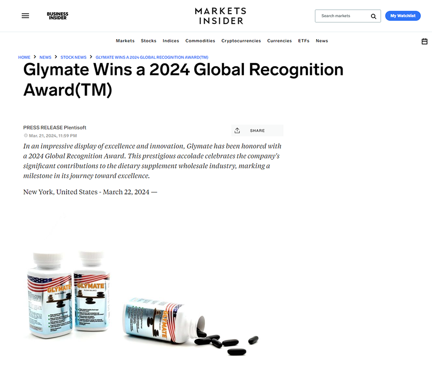 全球認(rèn)可獎(jiǎng)™的發(fā)言人Alex Sterling在頒獎(jiǎng)詞中寫道,“Glymate贏得2024年全球認(rèn)可獎(jiǎng),彰顯了該公司在膳食補(bǔ)充劑行業(yè)的領(lǐng)導(dǎo)力和創(chuàng)新性。他們對(duì)品質(zhì)、客戶滿意度和可持續(xù)性的承諾,為行業(yè)的其他公司樹立了高標(biāo)準(zhǔn)。我們祝賀Glymate獲得這一當(dāng)之無(wú)愧的認(rèn)可,并期待其持續(xù)的成功。”